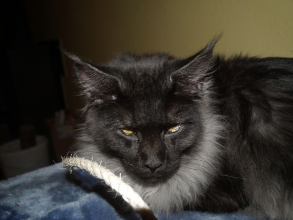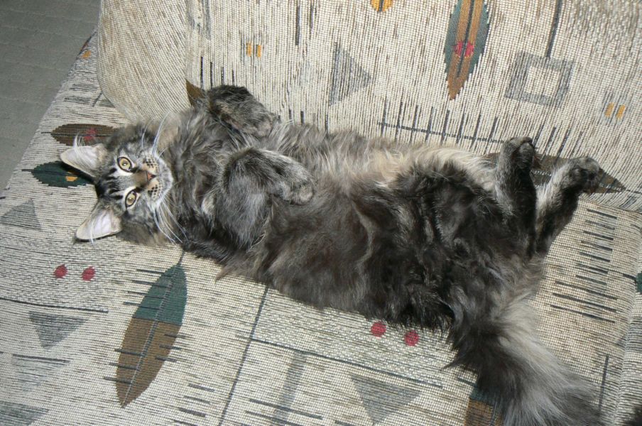 Fargo je neuvěřitelně kontaktní, uvrněný, mazlivý a přítulný. Nejraději se přítulí na křesle a nechá si hladit bříško.